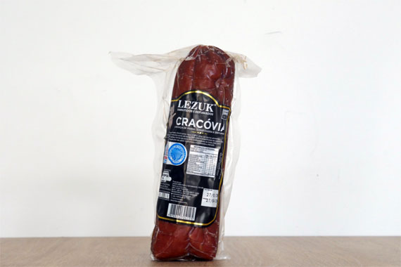 Descrição: Produzida por descendentes de ucranianos, a Cracóvia é um embutido defumado de carne nobre suína, alho, sal e especiarias, típico de Prudentópolis. Fundada em 2014, a Lezuk foi a primeira empresa no município a receber o selo SISBI, ajudando a divulgar o embutido para fora do Estado. Em 2025 a Cracóvia foi reconhecida com um produto de Indicação Geográfica por sua procedência e qualidade de origem.