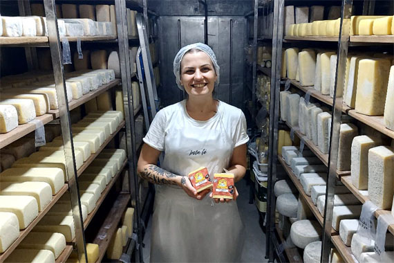 Descrição: Com mais três décadas dedicadas a produção de queijo artesanal, a família Hahneback é uma das poucas queijarias de Santa Catarina a produzir queijos com o gado pardo suíço. Seu queijo da Nonna, por exemplo, segue uma receita autoral que atravessa gerações. Feito de leite cru, possui sabor levemente ácido e marcante, trazendo notas intensas de umami que se desenvolvem com a maturação de 3 meses. Foi medalha de ouro no último Prêmio Queijo Brasil.